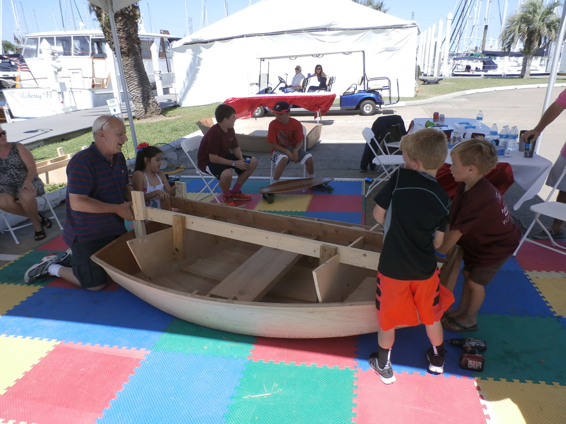 TX Chapter support of this show was very evident at the Kids Build a Boat activity booth. Both John Platou and Jeff Workman were formally recognized by the show sponsors for their unselfish support of this program over the past 8 years and were presented special Emeritis Awards. Unselfishly, the booth was also manned by dedicated “Coach” TX Chapter member, Alan Bischoff.
