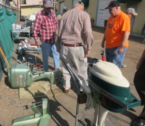 Sunday was our day to work on motors and we had the usual amount of people show up. John Graf had a Martin 20 that he needed to work on. It turned out to be stuck and needed additional time for the penetrating oil to work. I checked Jerry Ball’s Sea King in his absence to see if it had spark. It did. Glenn Seureau had a stubborn Mercury water pump issue to figure out. Last, but never least, Louis had to reassemble a 1946 Mercury that he had taken apart at his last meet in 2015. We all worked on motors, ate leftover Bar-B-Q, and then picked up the meet site and returned it to a normal shop again. We left about 6:00pm as originally designed.