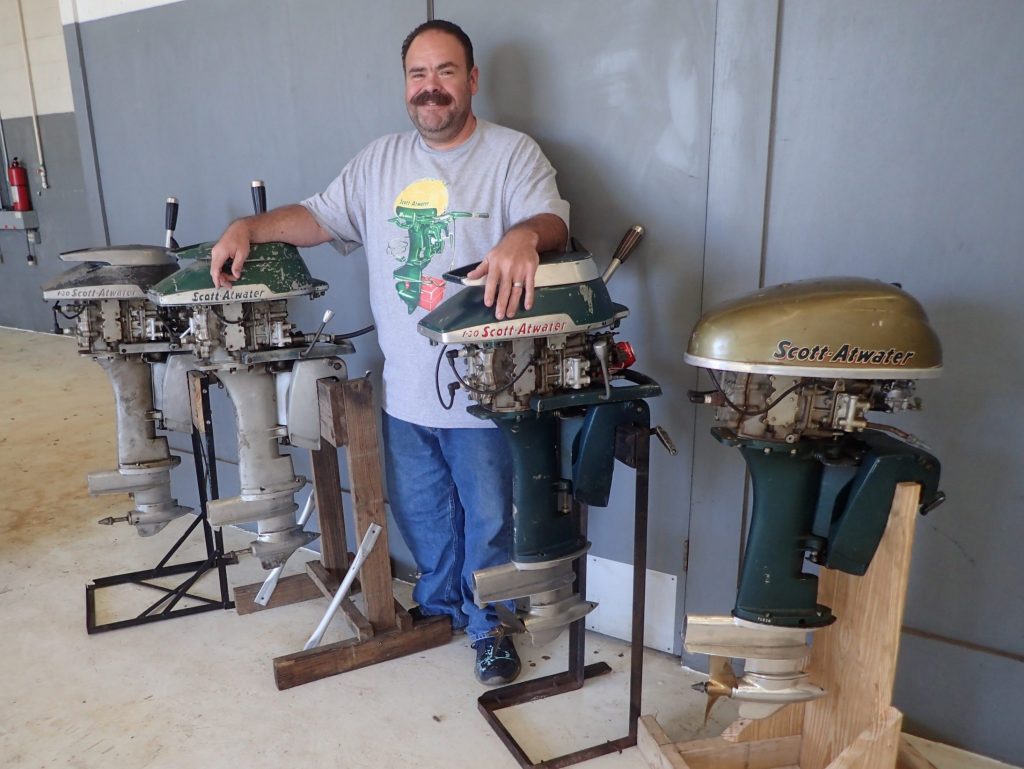 It would probably be an understatement to say that almost everyone knows the legendary “Scott-Atwater Al” Smith. For many years, he searched hoping to find a “Green Hornet” Scott-Atwater outboard, but it seemed to elude him for a very long time. Remarkably, one day, he found one and the owner actually sold it to him. End of story, right? Well, no. It seems that once the ice was broken, the “Green Hornets” started following him home. Al now has four of these rare outboards and the smile on his face while at this meet showed how happy he was to display this piece of his collection.