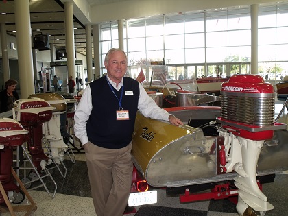 Once again, the Texas Chapter of the Antique Outboard Motor Club, Inc. (AOMCI) joined the Southwest Chapter of the Antique and Classic Boat Society (ACBS) to co-exhibit boats and motors at the huge annual Houston International Boat, Sport & Travel Show held at the NRG (formerly Reliant) Center. This is a huge show – over 1100 new “for sale” boats were there accompanied by all kinds of outdoor gear, RVs, campers and ‘what all’.