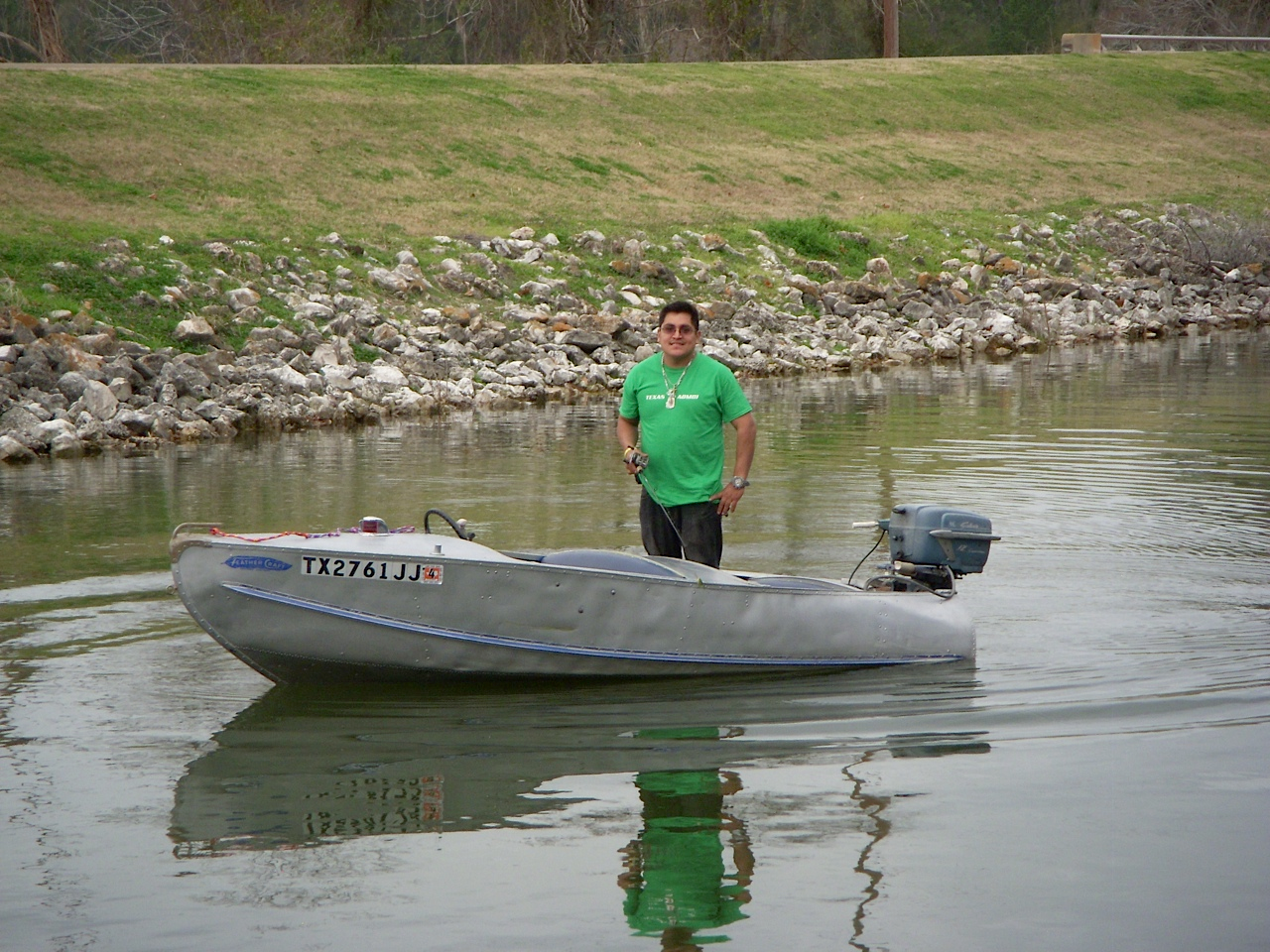 Launching Edward's Yellow JacketDavid Coffey Sr. hosted a great meet that was thoroughly enjoyed by all members attending on Saturday, Feb. 1st.  See all the photo coverage at our gallery for the meet: http://www.texaschapteraomci.com/?p=2786   . This wet meet was held at Stowaway Marina on Lake Conroe.  The marina was tucked into a nice park setting with tall east Texas pine trees, quiet protected water, a wide boat ramp and a large covered pavilion where we all met. This is an annual meet that David Coffey has graciously held in celebration of his son and David Coffey Jr’s birthday. The meet was well attended with the weather holding out providing us with overcast skies and 75-degree warmth, which is pretty darn good for February.