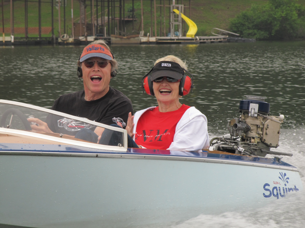 Dennis and his lovely wife Sharon Schmidt ‘s Glen-L Squirt was the Peoples’ Choice feature boat of the meet. After some tweaking with the motor, all went well and we had a good time.