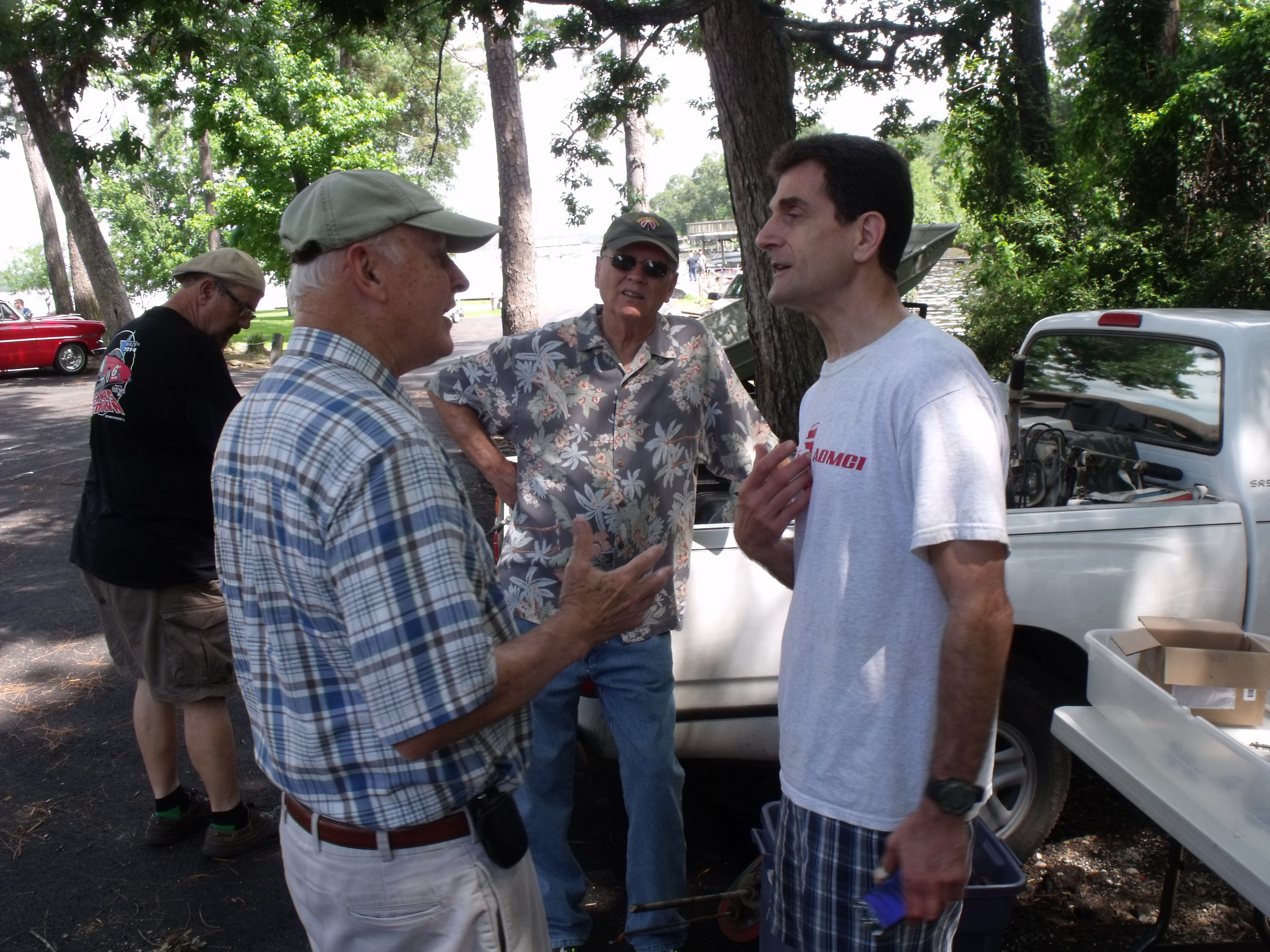 For the boatless, there was plenty of friendly gabbing and visiting. Spouses Suzie Johnson, Cindy Slator and Suzie Finn caught up and shared about the recent Lake Catherine meet. It was just a nice day to just sit and relax under the trees.