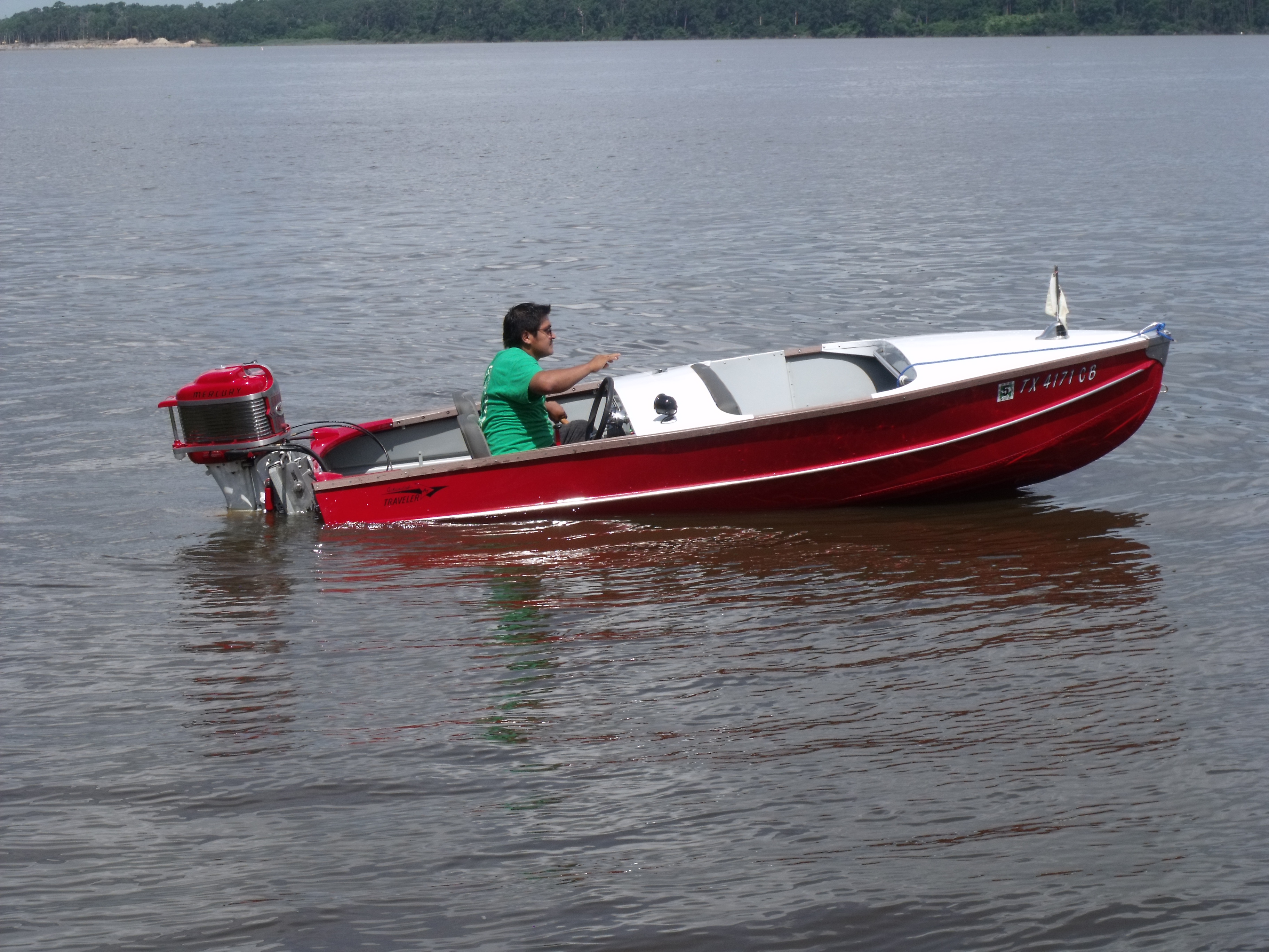 New members John and Karen McRae from Lufkin brought their 1962 Pacific Mariner powered by a ’78 Johnson 85hp. This red and white beauty is a clean machine and John says it rides and handles great.