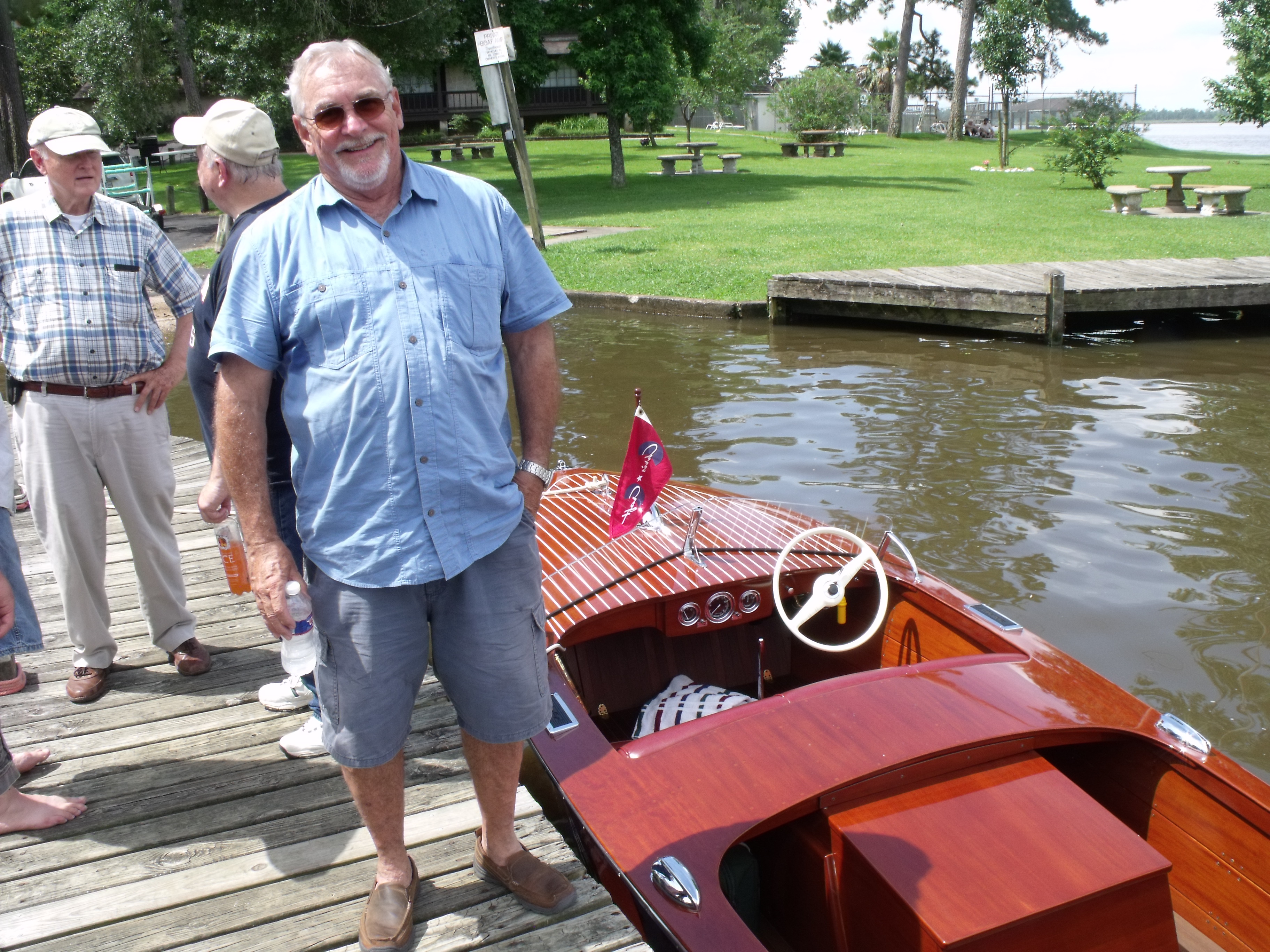 Other members were present but boatless and/or motorless – Adam’s new project boat needs some more time, Di Johnson took his Feathercraft/Mk-58 up North for the summer, Bob Macaluso’s Crosby is in the shop getting a fresh hull paint job. Louis Rothermel stopped by for a nice visit. Tom Oncken was also in attendance and many reminisces were reminisced. Alan Bischoff, our senior Kids Build a Boat coach was on hand to enjoy the festivities.