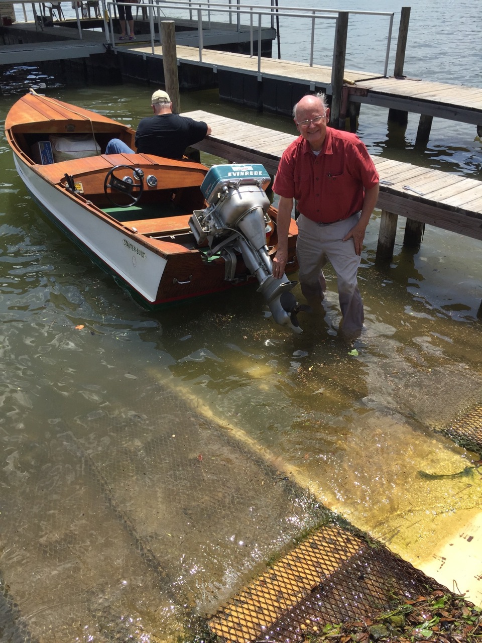Although it has been a while, Louis Rothermel brought his Stauter boat powered by its 1943 Evinrude Storm Boat Motor. It was nice to see that old Evinrude out there again.