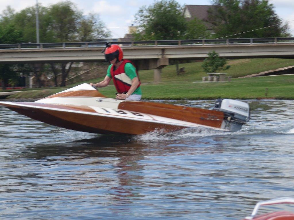 Meatball ran his Yellow Jacket wooden runabout powered by a Merc 850 and it looked great zipping along the lake. Peter Schultz came prepared this year as he ran several different outboards on his Aluma Craft boat.